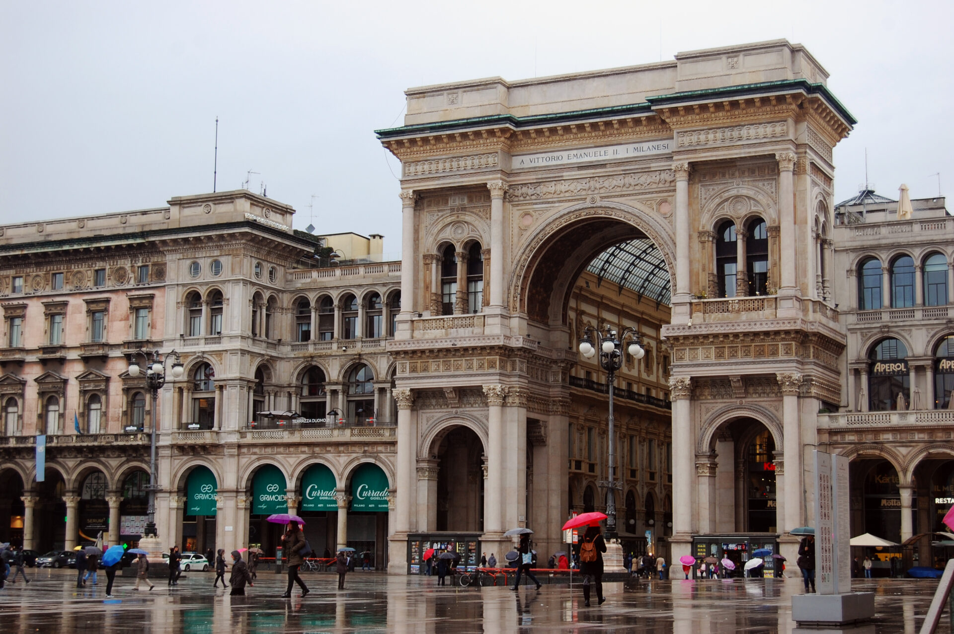Jeżeli lubicie luksusową architekturę i luksusowe wnętrza to miejsce dla was. Traficie tu bez problemu, ponieważ Galeria Vittorio Emanuele II, czyli wielki pasaż handlowy, znajduje się zaraz przy mediolańskiej katedrze i prowadzi, aż do Piazza Scala. To jednocześnie miejsce przechodnie, które mimowolnie będziecie wielokrotnie przemierzać. Za tym klasycznym rzeźbionym łukiem mieści się pierwszy wybudowany we Włoszech ze szkła i stali pasaż, na planie krzyża, którego dolną partię zajmują luksusowe sklepy i restauracje natomiast górną okna w rzeźbionych ramach i przeszklone sklepienie z kopułą. Kto nie chciałby mieć takiego pasażu w swoim mieście!