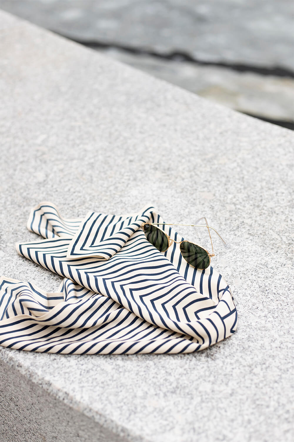 Koniec końców zdecydowałam się na jedwabną apaszkę w geometryczny wzór San Remo. To najbardziej ikoniczny model Totême, który nie sposób pomylić z żadnym innym. Noszę ją na szyi, na głowie, przewiązaną na koszyku wiklinowym i jako gumkę do włosów. Jest cudowna w dotyku, ale … ma jeden mankament, całkiem spory niestety – jest wyprodukowana w Chinach. Wiem, że Chiny powinny nam już przestać kojarzyć się z tandetą i złą jakością, ale jakoś uległam mitowi lokalnej produkcji, szczególnie kiedy patrzyłam na cenę ubrań Totême. Była to ostatnia rzecz jaką przyszło mi do głowy sprawdzić, a niechlubny wpis na metce zauważyłam dopiero po jakimś czasie.