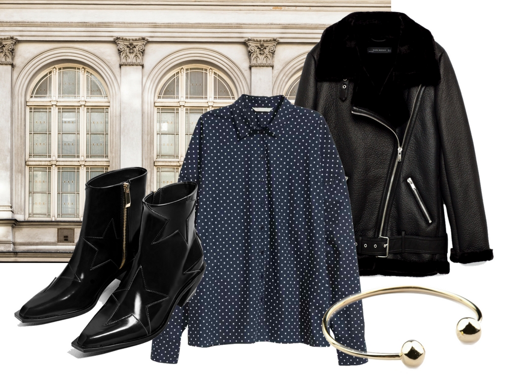 Za oknem coraz zimniej, przyszedł czas wzbogacić swoją garderobę o najcieplejszą kurtkę na świecie, czyli kożuch, ale nie byle jaki – ta perełka jest inspirowana słynnym Acne Shearling Coat, jedynie w cenie Zary. Pod takim ciepłym płaszczem (piszę płaszczem, ponieważ specjalnie zamówiłam rozmiar L aby był jak najbardziej oversizowy i wygodny) nie ma sensu nakładać grubych swetrów, klasyczna granatowa koszula w kropki z H&M Trend + złota biżuteria z Wishbone sprawdzą się doskonale. Na koniec mój must have, czyli extrawaganckie kowbojki z Zary, które są wykonane z materiału idealnego na deszcz, pluchę i błoto. Teraz wiem, że zima mi nie straszna!