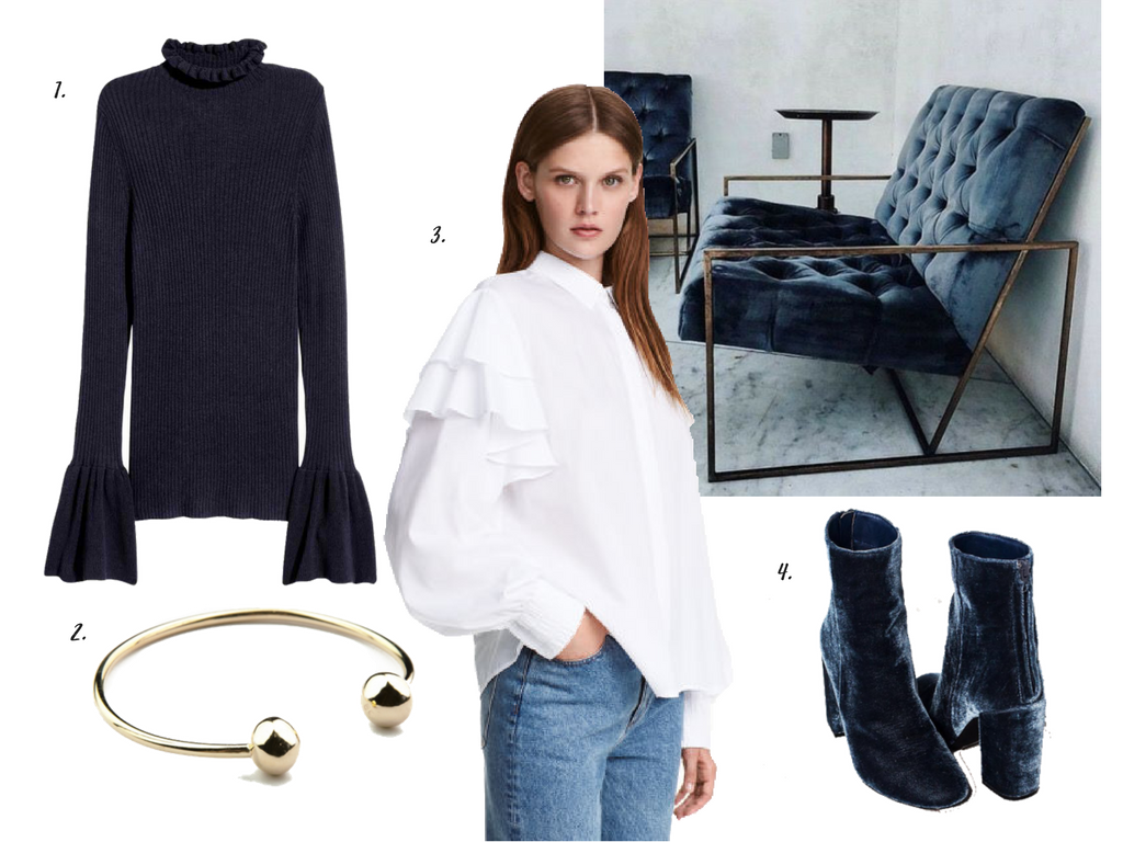 It’s time to start preparing your autumn wardrobe! Few of my favorites right now are 1. Ruffles – this trend was seen for example in Stella McCartney show and will be a hot trend this season. I picked the sweater from H&M with really cool sleeves. 2. Gold bracelet. 3. Another ruffled item, this time white shirt from H&M. 4. And last but not least – velvet boots. I completely freaked about them!