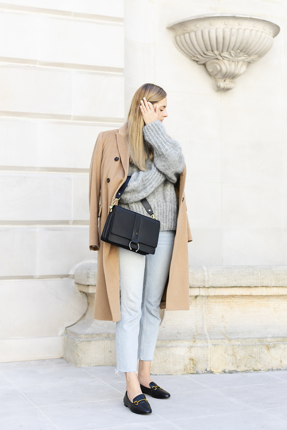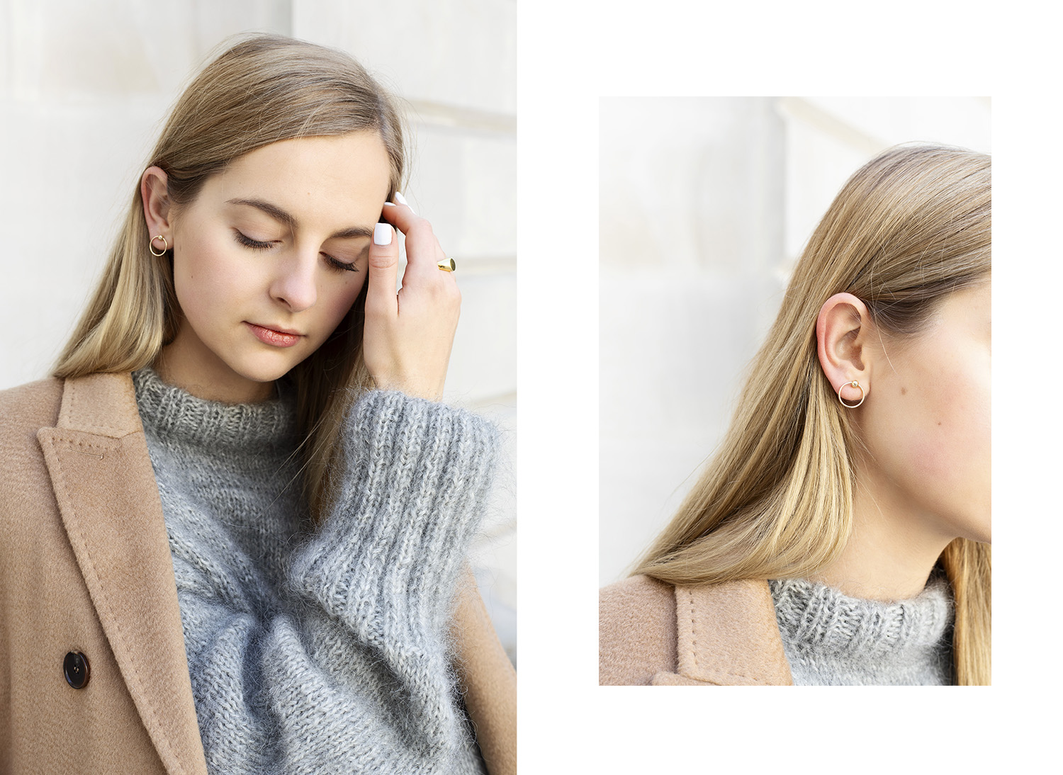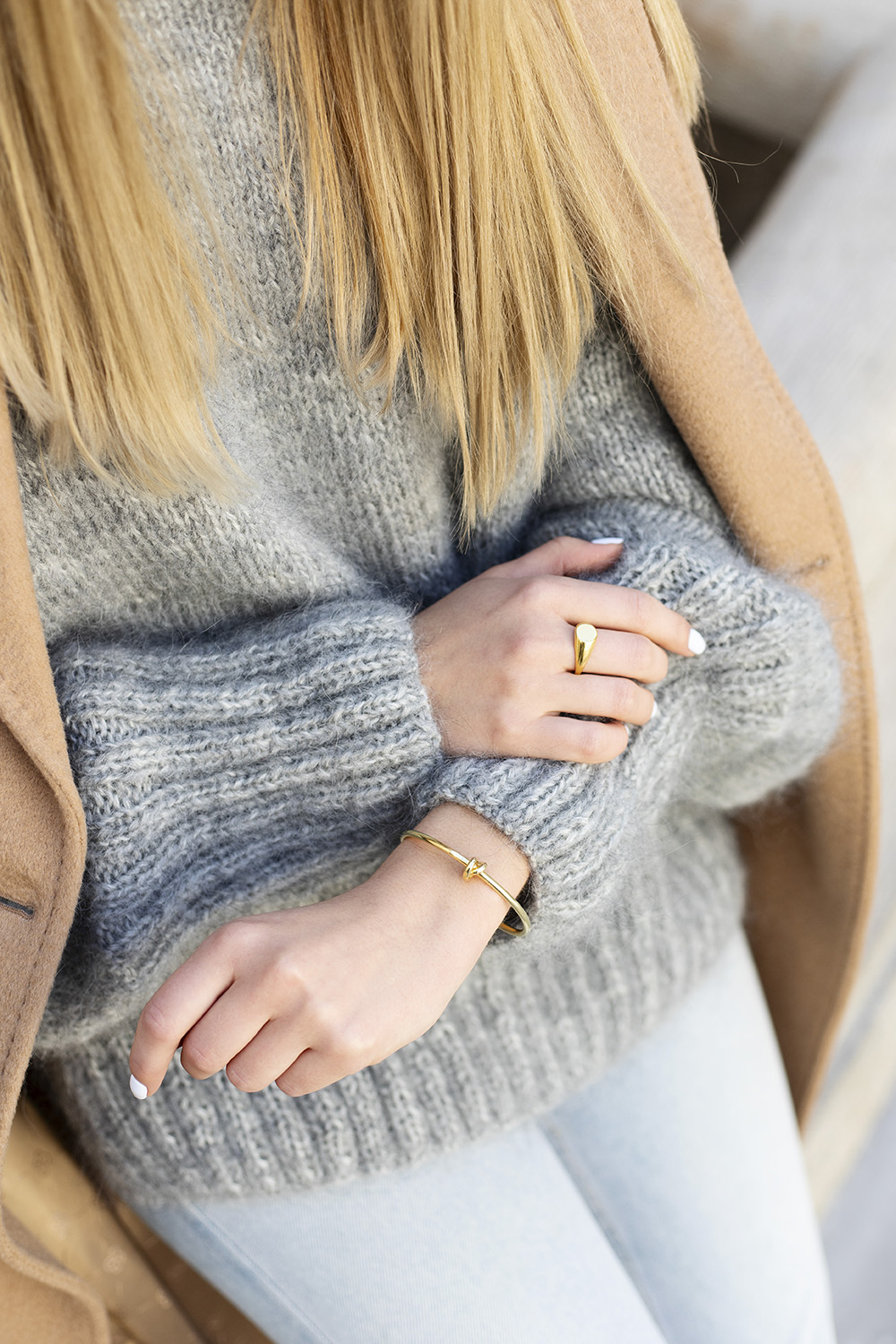 Jesienią nie lubię przesadzać z biżuterią, dlatego wybrałam kilka drobnych akcentów również od polskich marek – Rosa Chains i Wishbone. Do tego dobrałam moje ukochane jeansy, mokasyny i voila!