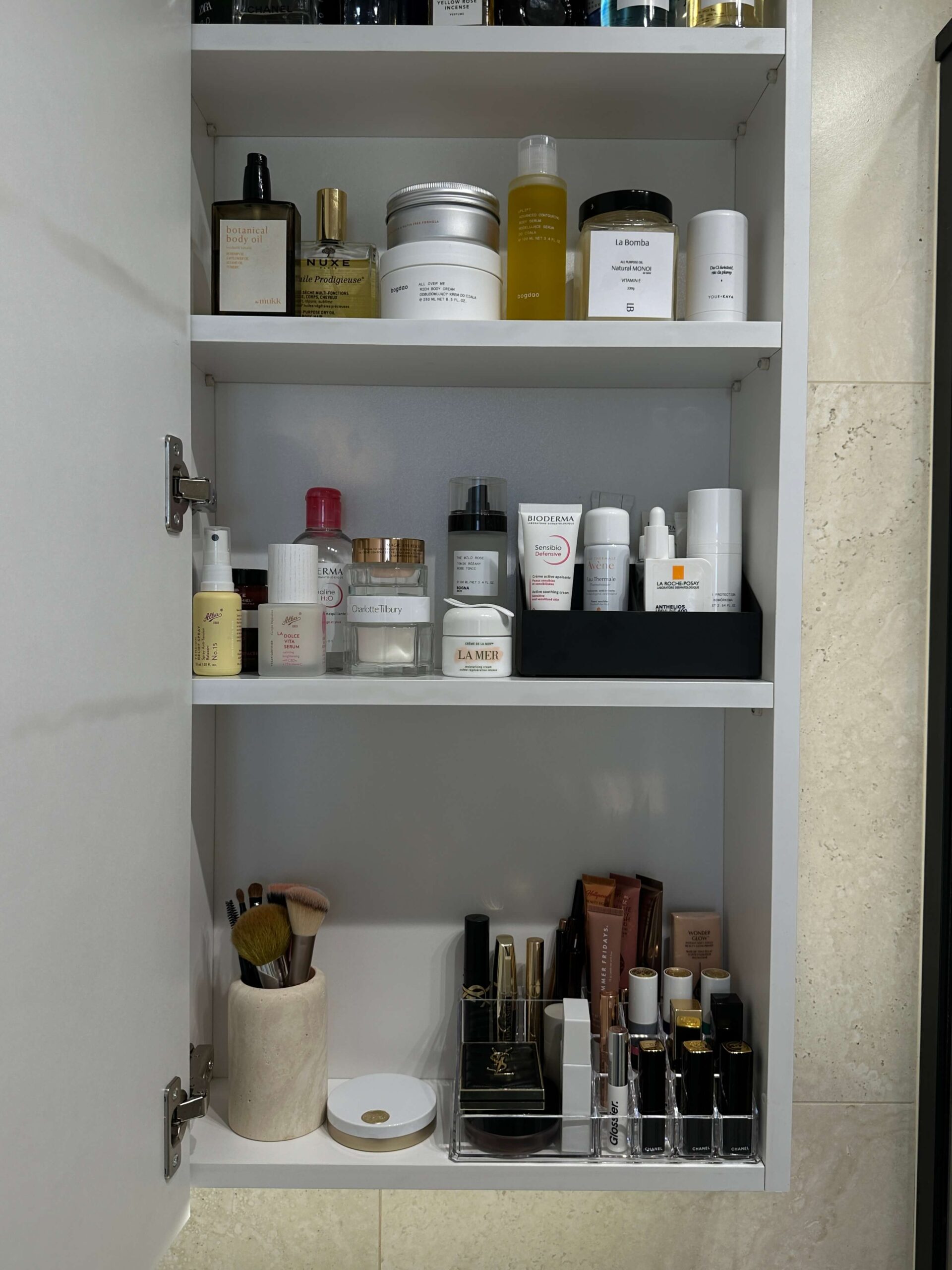 The main colour here is beige, white and black. To add a little bit more character to it I’ve added a few stainless steel decorations and a touch of orange (not just any orange but the Hermes orange!) and gradually I’m investing in Polish art.