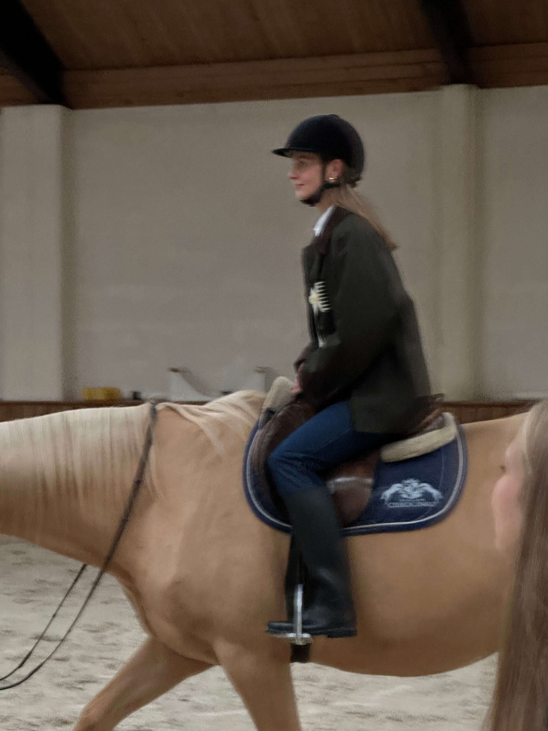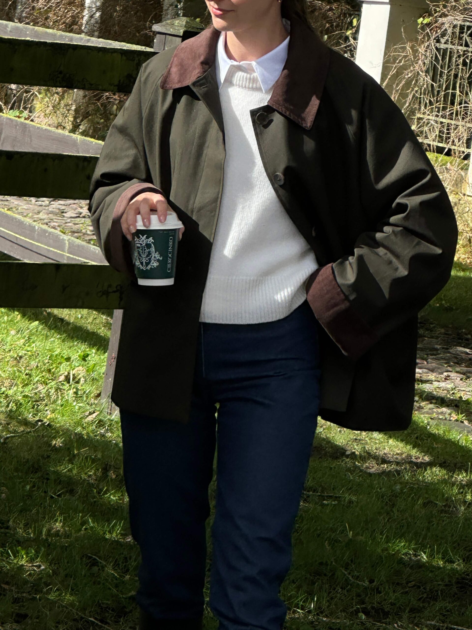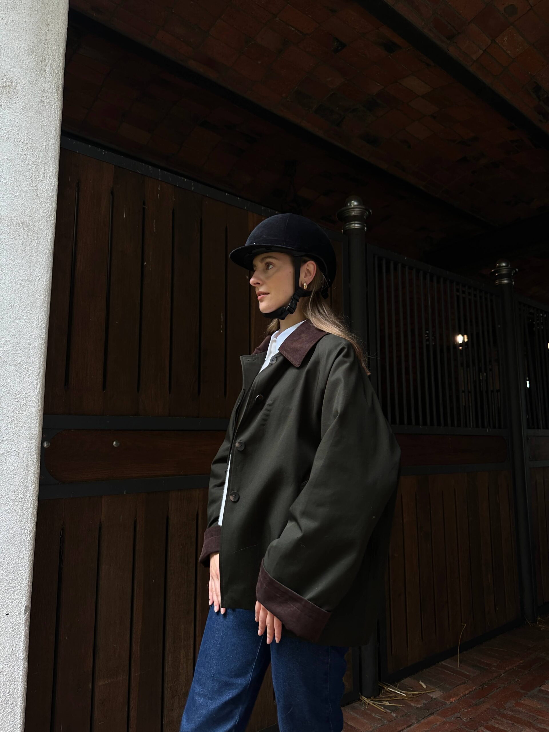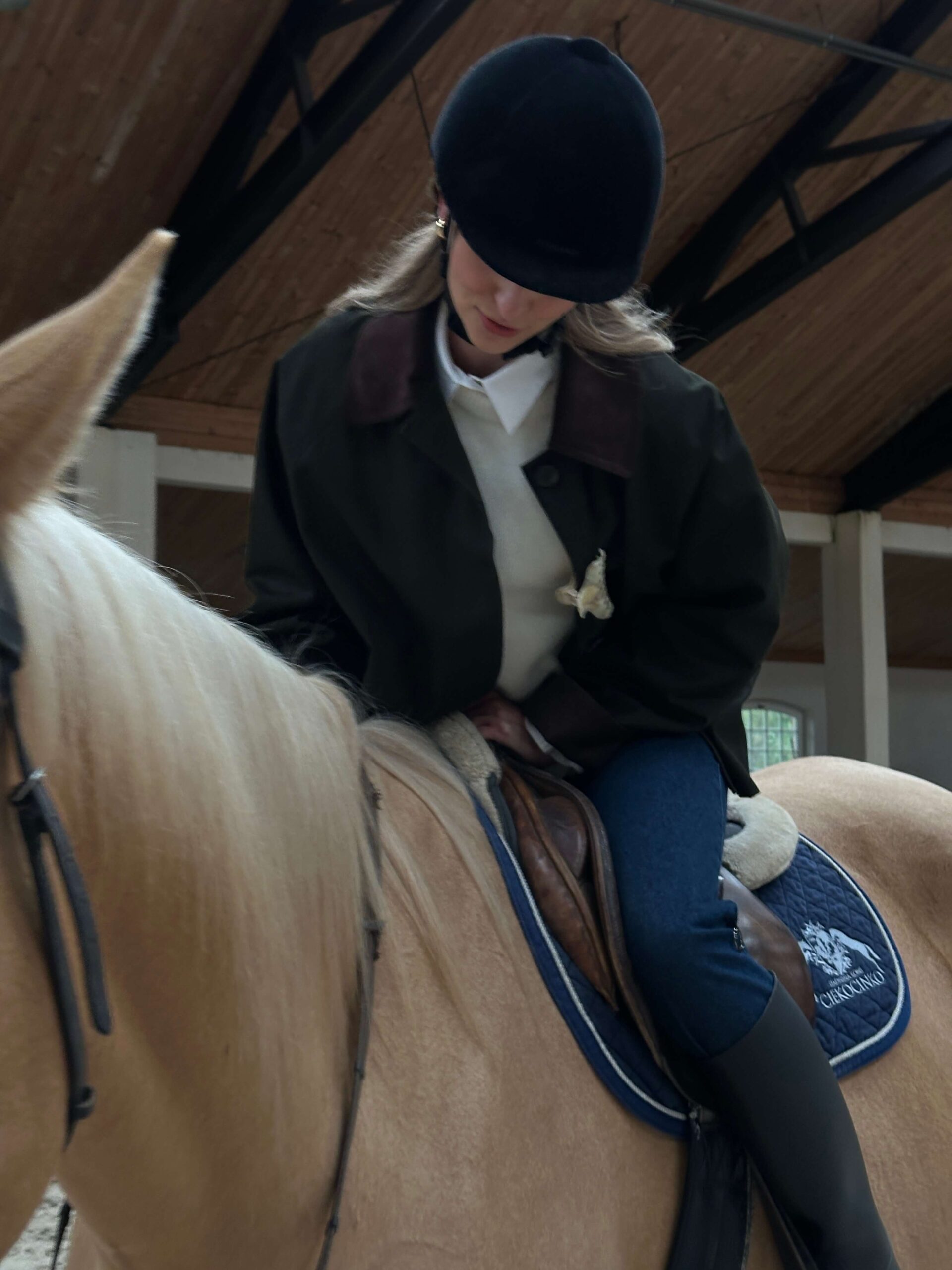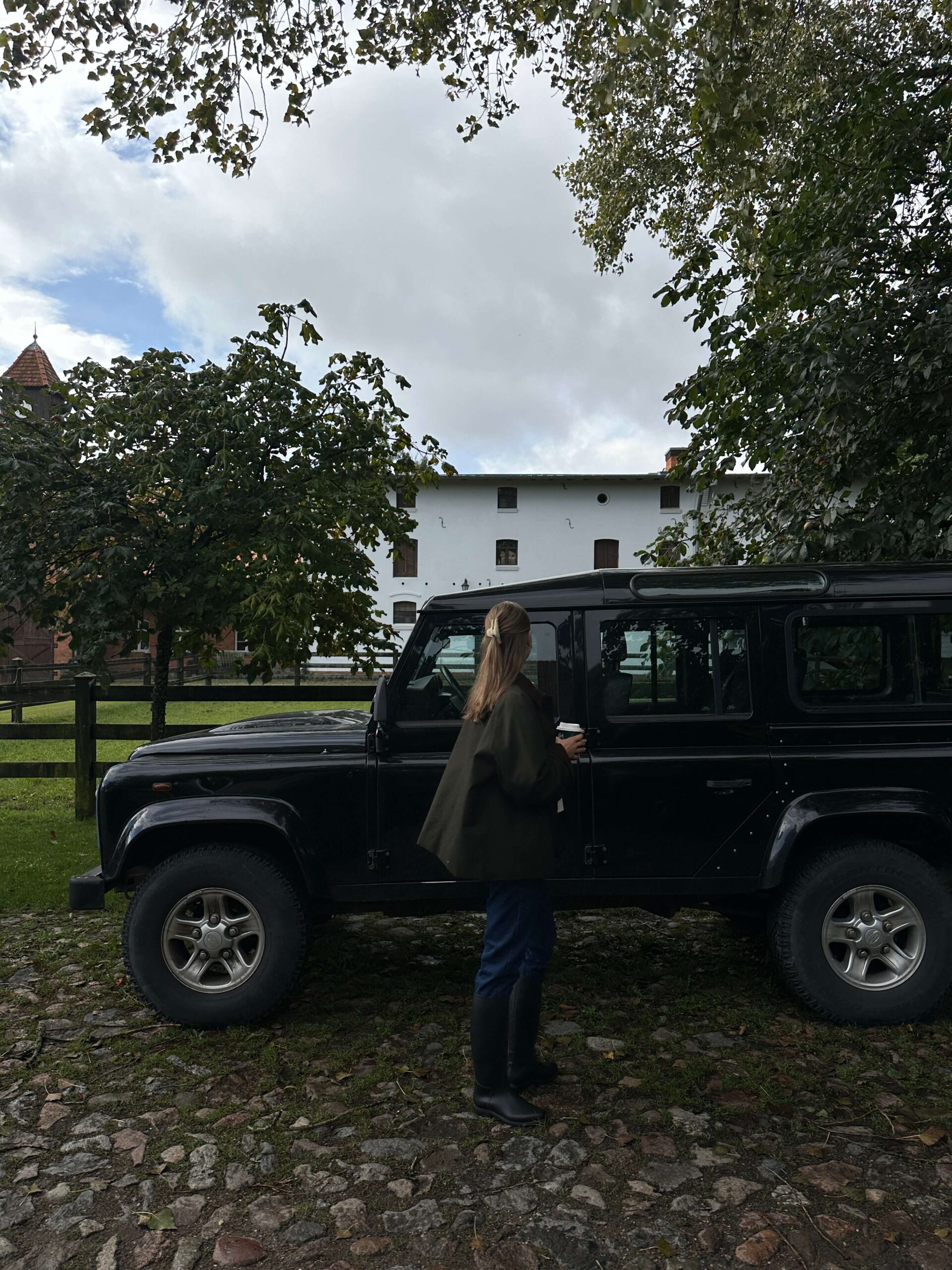 Wellies, a field jacket, a cashmere sweater, and a white shirt underneath — I call it the Cotswolds style. I’m forever longing for the chic and cosy British countryside aesthetic, and I got so lucky because I got to experience it in Poland — by the seaside, at the beautiful Ciekocinko Palace, with the MLE Collection brand. Foggy mornings, horse riding, wine evenings in the games room, and an open fire.