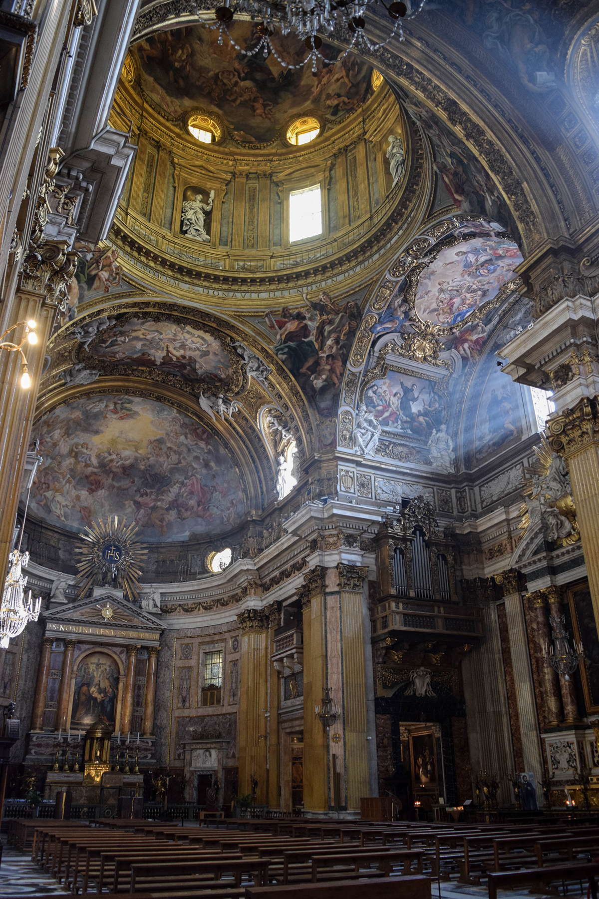Naoglądałam się w życiu wielu sufitów, albo jak wolą historycy sztuki “sklepień”, ale to te gotyckie zawsze urzekały mnie swoją prostotą niż barokowe z freskami i sztukaterią – aż do tego wyjazdu. Rzym jest jedynym miastem, w którym wchodząc do dwudziestego kościoła, dalej czułam się zaskoczona. Jeżeli chcecie zobaczyć naprawdę zjawiskowe sklepienia renesansowych i barokowych kościołów oto lista kilku najlepszych: