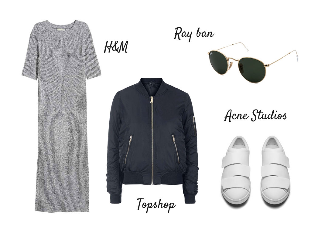 Few things that are on my mind right know. Long midi dress (Celine like), bomber (even though everybody has it, it’s still  super comfy and gorgeous. White sneakers (total must have) and classic round Ray ban sunglasses.