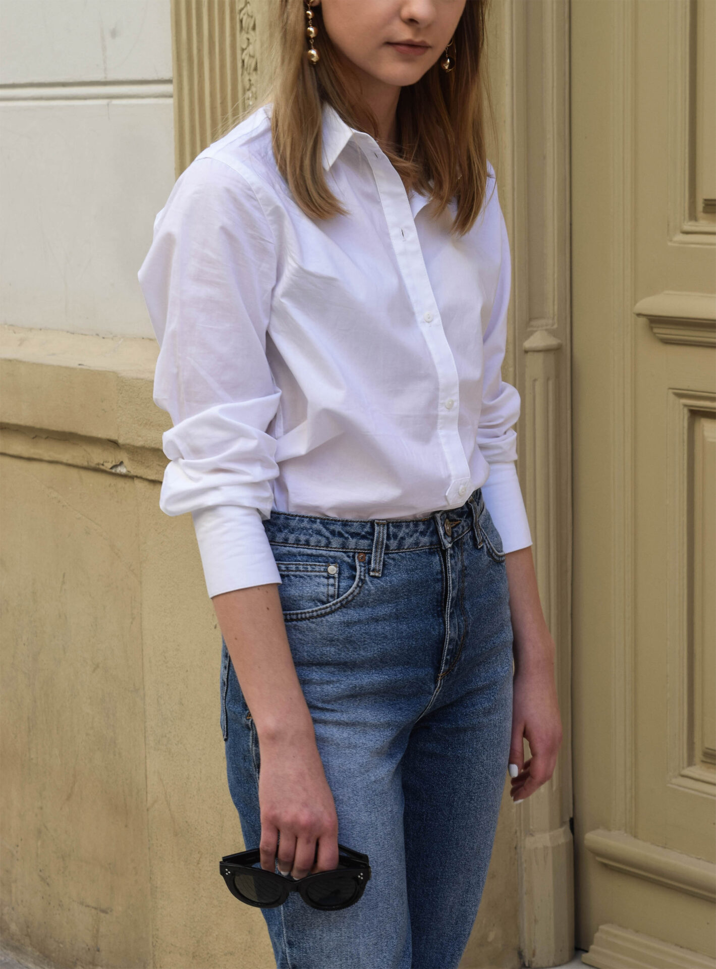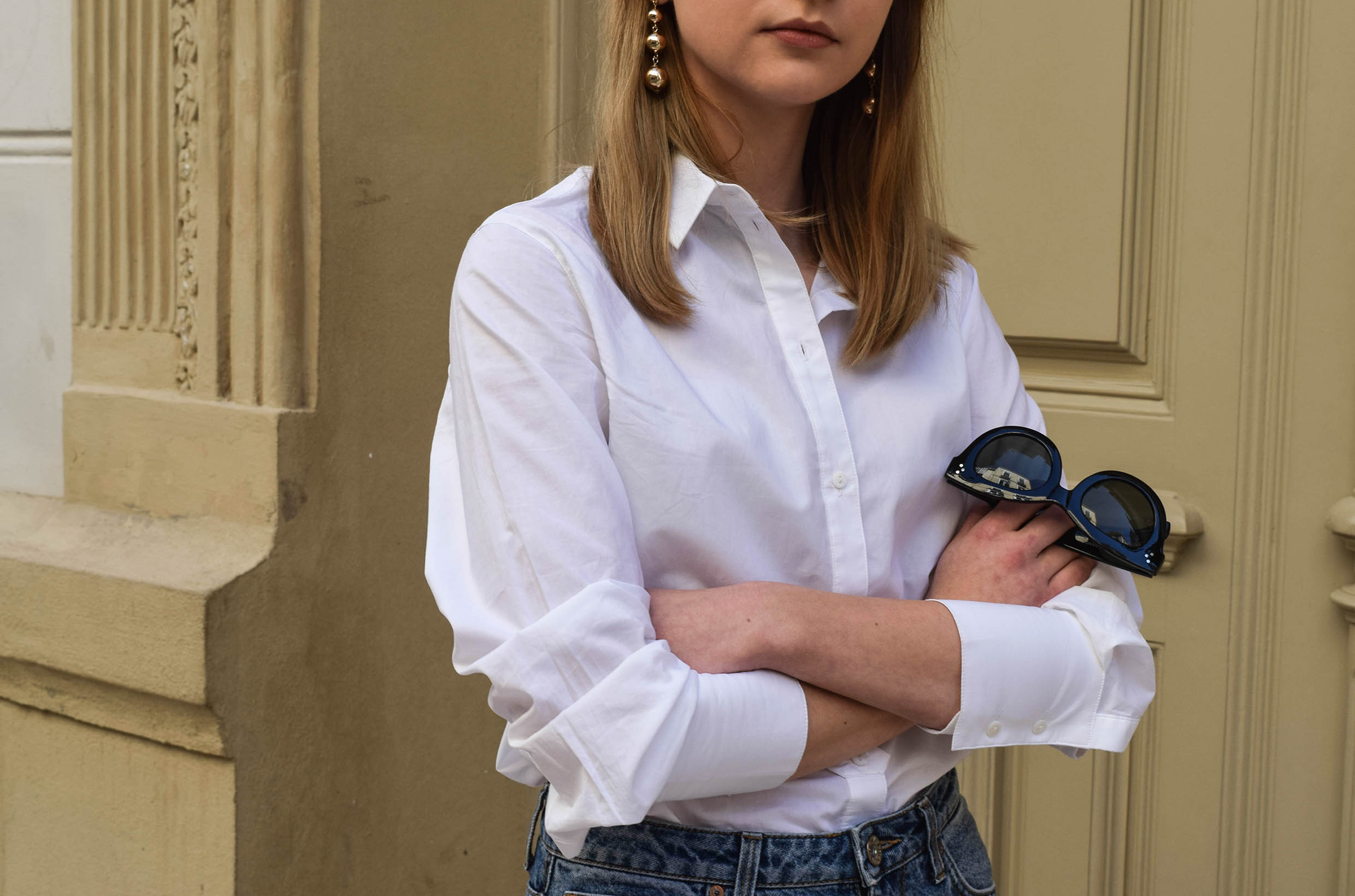 Koszula H&M Premium | Spodnie H&M | Mokasyny H&M Premium | Kolczyki I am | Okulary Mango