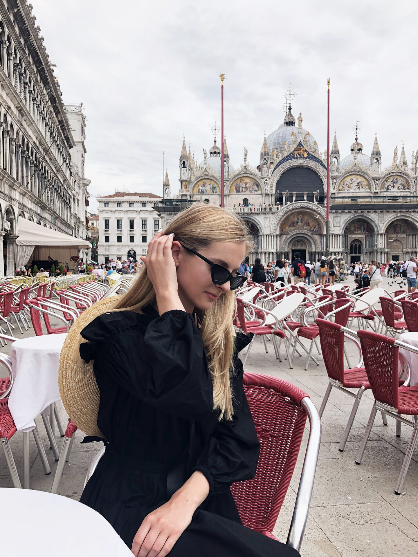 MODA. Na pewno warto mieć ze sobą chustę. Przygotujcie się  na to, że aby wejść do kościołów i bazylik konieczne będzie zakrycie ramion i kolan. Po drugie okulary, ponieważ Wenecja to miasto na wodzie, a to oznacza dużo odbijającego się światła. Po trzecie, kapelusz – stylowy i chroni przed słońcem! I wreszcie – wygodne buty – ja wybrałam sprawdzone klapki, ponieważ wiedziałam, że będę długo, dłuuugo chodzić.