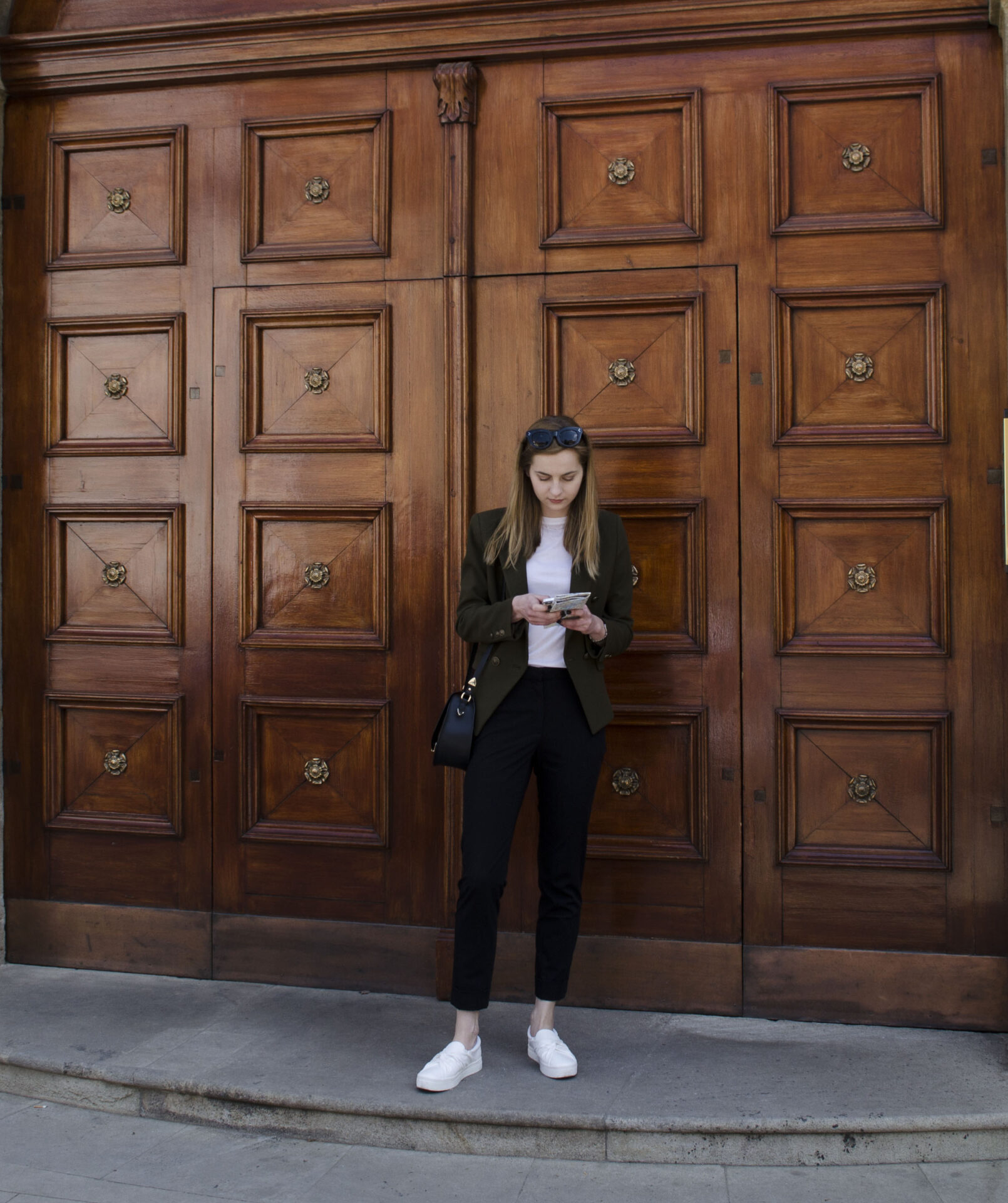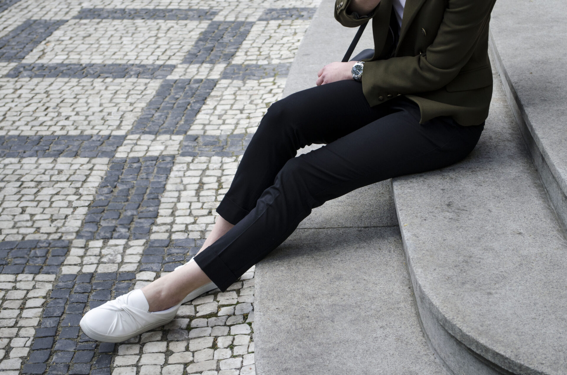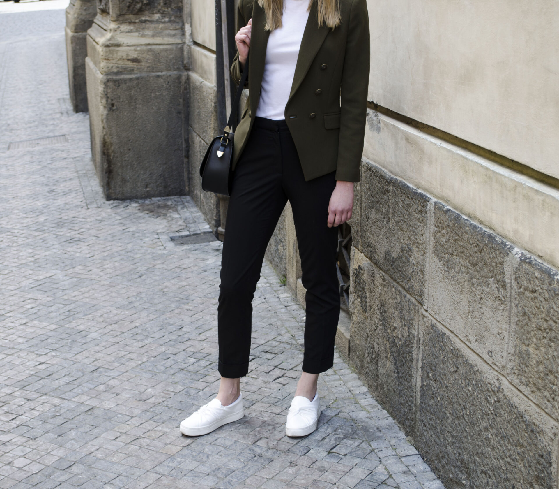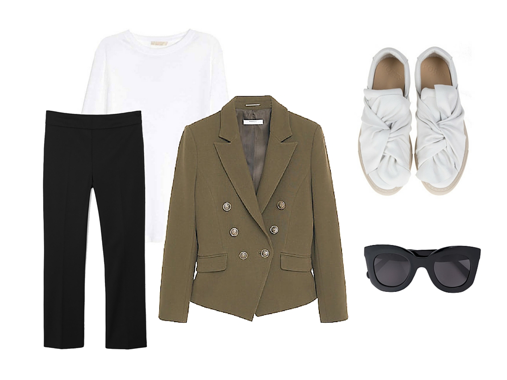 Uwielbiam ubrania z linii workwear, są praktyczne, basicowe i łatwe do stylizowania. Marynarki, spodnie materiałowe czy koszule, można dowolnie miksować i stylizować na dzień i na wieczór. Wybierając się na weekendowy wyjazd za granicę nie zawsze można przewidzieć pogodę czy miejsca, które będzie się odwiedzać, jednak wybierając klasykę jest się przygotowanym na każdą okazje (chodzenie po mieście, zabytkach, knajpach) czy temperaturę (marynarkę zawsze można przecież zdjąć). Light suit, czyli tzw. lekki garnitur to świetna casual’owa opcja, oliwkowa marynarka ( w stylu Balmain), materiałowe spodnie + białe sneakersy to świetna alternatywa również do pracy.