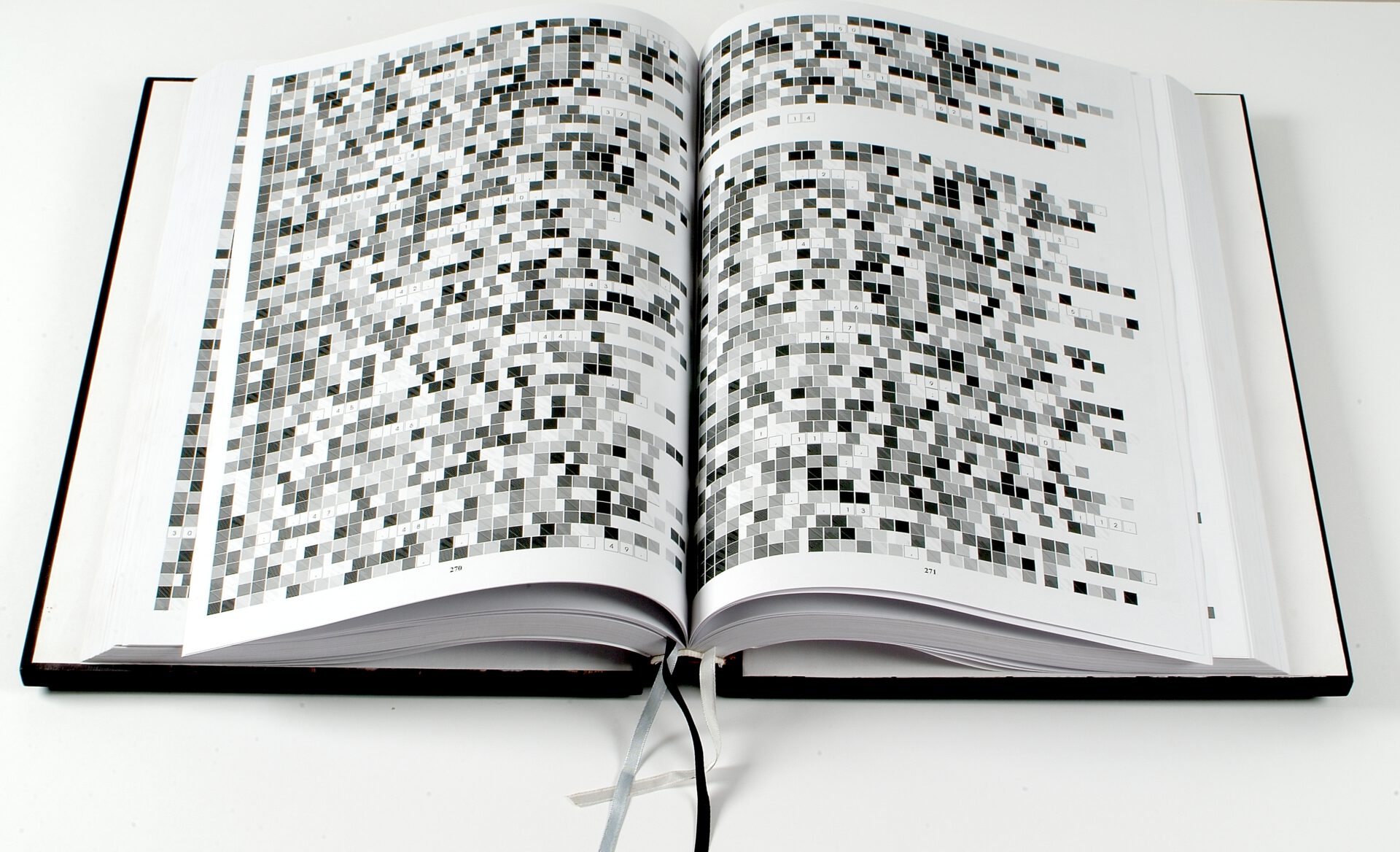fot. Franciszek Orłowski “Biblia [NT] – przekład enigmatyczny”, 2005-06, książka artystyczna: papier, asfalt, 43 x 31 x 8 cm, Kolekcja Grażyny Kulczyk